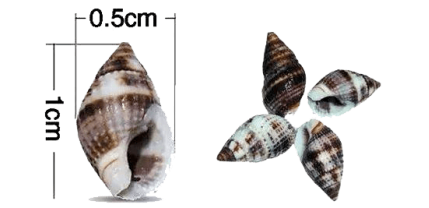 织纹螺,俗称海丝螺、海蛳螺、麦螺或白螺等,主要生活在沿海浅滩的沙质或泥质海底,在我国山东、浙江、江苏、福建、广东、广西、海南等东南沿海地区都有分布。织纹螺的外形特征为尾部较尖、细长,长度约为1厘米,宽度约为0.5厘米,约指甲盖大小,完全可以说是小巧玲珑。