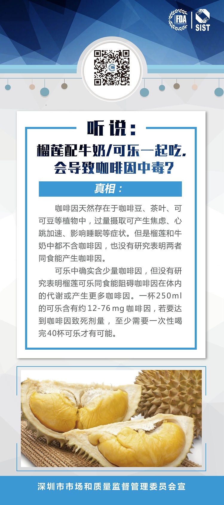 榴莲配牛奶/可乐一起吃,会导致咖啡因中毒?